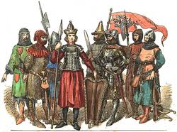 Prócz rycerstwa oraz sołtysów i wójtów siłę zbrojną stanowili zwykli poddani, którzy zawsze mieli obowiązek stawać z bronią w razie najazdu obcego na ziemie królestwa. Wśród wolnej ludności kmiecej było wielu dobrze posługujących się bronią, którzy przy każdej nadarzającej się okazji stawali do dyspozycji walczących, oferując swe umiejętności. Stanowili oni swego rodzaju najemników, którzy zarabiali pełniąc służbę wojskową, czy to w załogach zamkowych, czy oddziałach piechurów będących non stop do dyspozycji panującego. Ich znaczenie bardzo wyraźnie się uwidoczniło podczas wojen domowych toczących się w Królestwie Polskim po śmierci Kazimierza Wielkiego. Służba zaś stawała się nierzadko okazją do społecznego awansu i zasilenia stanu rycerskiego dzięki królewskiej łasce. Oczywiście wojskową służbę pełnili także mieszczanie. Ich obowiązkiem było utrzymywanie w sprawności umocnień obronnych miast, zaś cechy rzemieślnicze były zobowiązane do organizacji obrony poszczególnych wież i odcinków murów. Stąd w Krakowie poszczególne baszty miały swoje nazwy nawiązujące do cechu, mającego o nie dbać, a było ich niemal 40 (baszty np. bednarzy, pierścienników, siodlarzy, łaziebników, baszta katowska, dwie baszty szewskie, baszta nożowników i inne). No i nie ulega żadnej wątpliwości, że to w miastach, w warsztatach płatnerskich powstawało najwyższej jakości uzbrojenie tak obronne, jak i zaczepne.